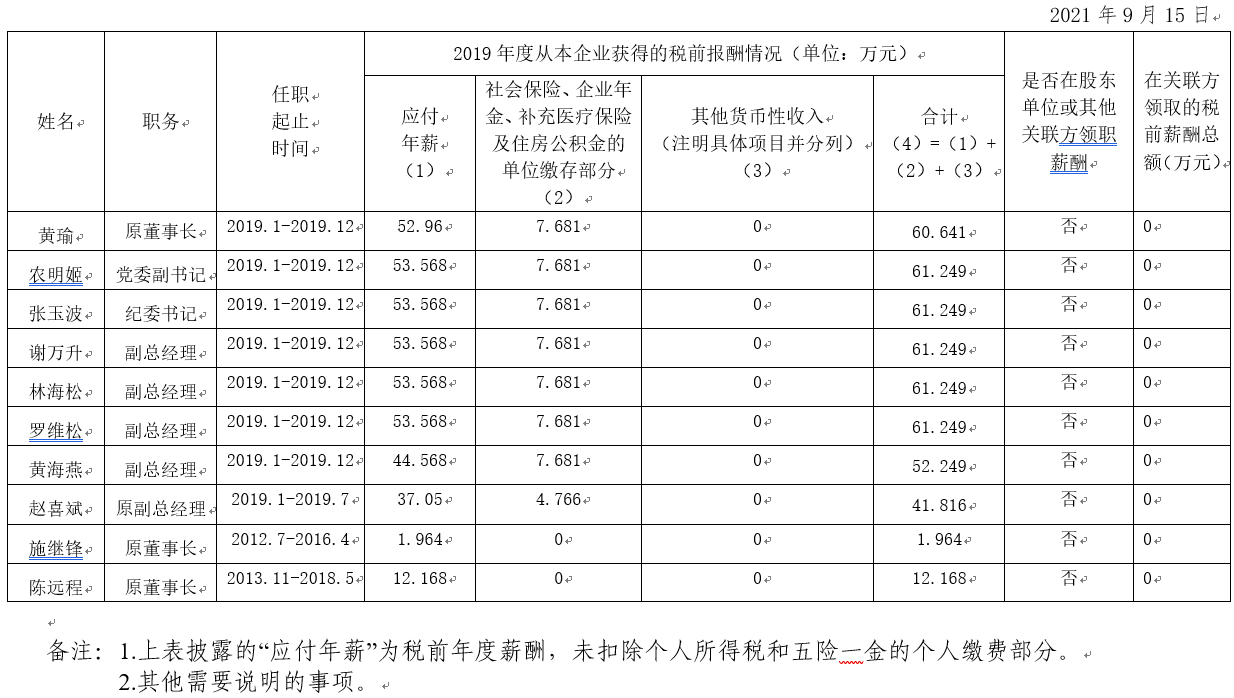 2019年度南寧交通投資集團有限責任公司公司企業(yè)負責人薪酬信息披露