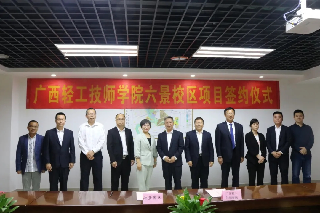 4月29日下午,南寧六景工業(yè)園區(qū)管理委員會、廣西輕工技師學(xué)院在六景工業(yè)園區(qū)內(nèi)正式簽訂廣西輕工技師學(xué)院六景校區(qū)項目投資合同書,標志著交投園區(qū)公司服務(wù)跟進的又一項目簽約。