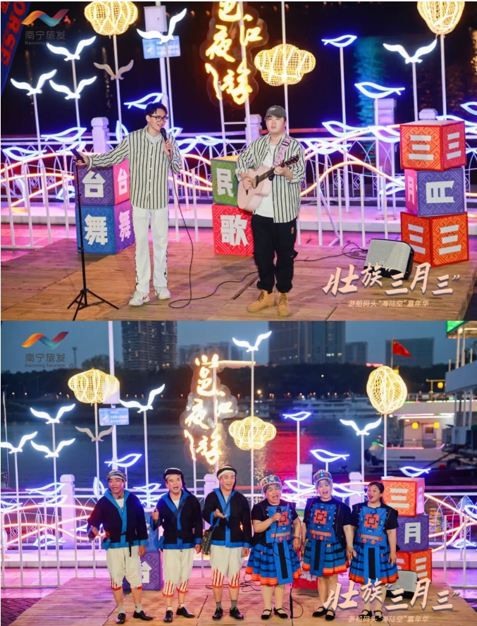 三月三期間,民生旅游碼頭邕江夜游項目推出穿民族服飾免費(fèi)乘坐特定航班、躉船民族服飾試裝區(qū)、演奏非遺獨(dú)弦琴、滑板+陸沖極限運(yùn)動賽、潮流音樂精良打酒站、少兒鴻鵠樂坊快閃等精彩活動,讓市民和游客們在這個廣西特有的節(jié)日里感受到了濃厚的民族文化氛圍和節(jié)日的歡樂,成為了市民和游客們歡度佳節(jié)的熱門選擇,留下了美好的回憶。