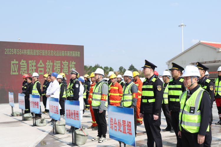 林橫高速開展?;愤\輸泄漏突發(fā)事故應(yīng)急聯(lián)合救援演練