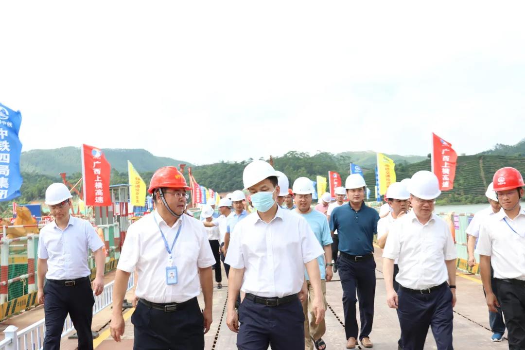 7月8日,自治區(qū)政協(xié)副主席、黨組成員嚴朝君率隊到所聯(lián)系推進的自治區(qū)重大項目——上林至橫縣高速公路調(diào)研,協(xié)調(diào)解決項目建設(shè)中存在的困難和問題。