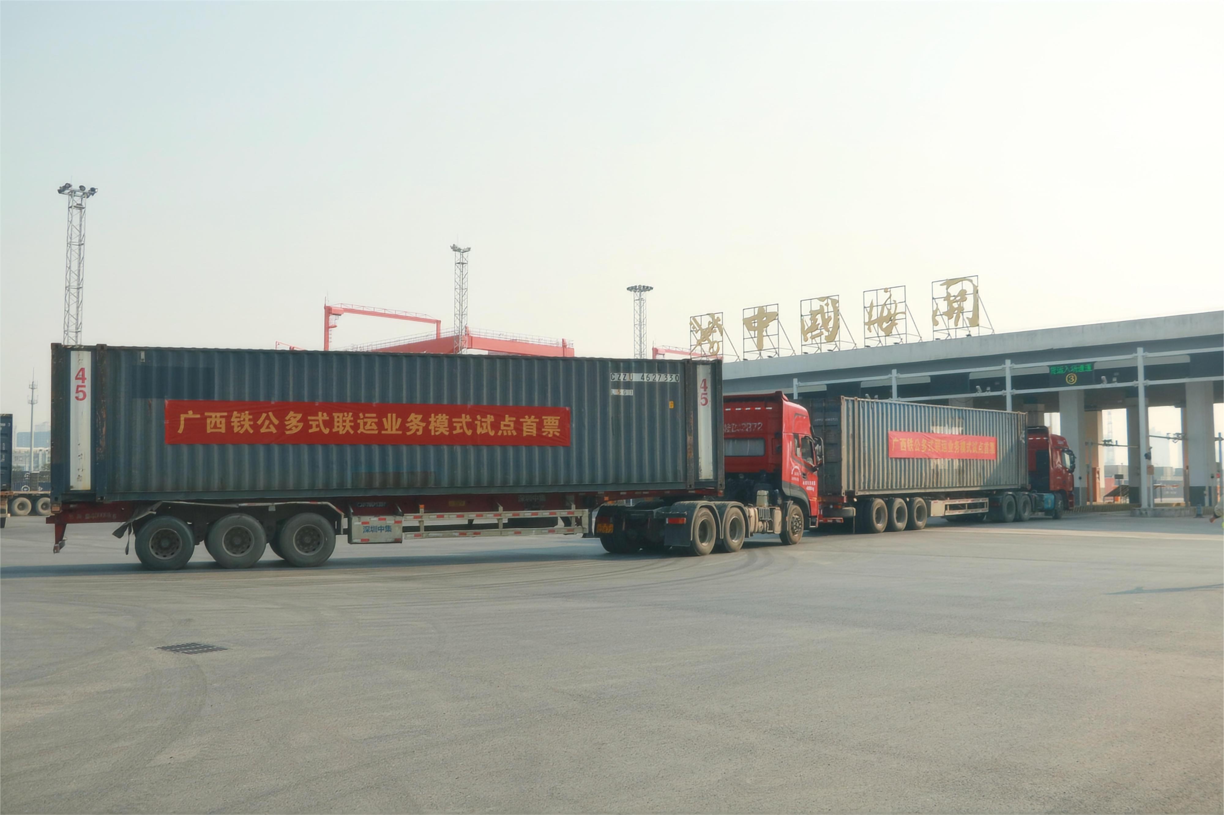 廣西首票出口貨物鐵公多式聯(lián)運模式試點業(yè)務(wù)正式啟運
